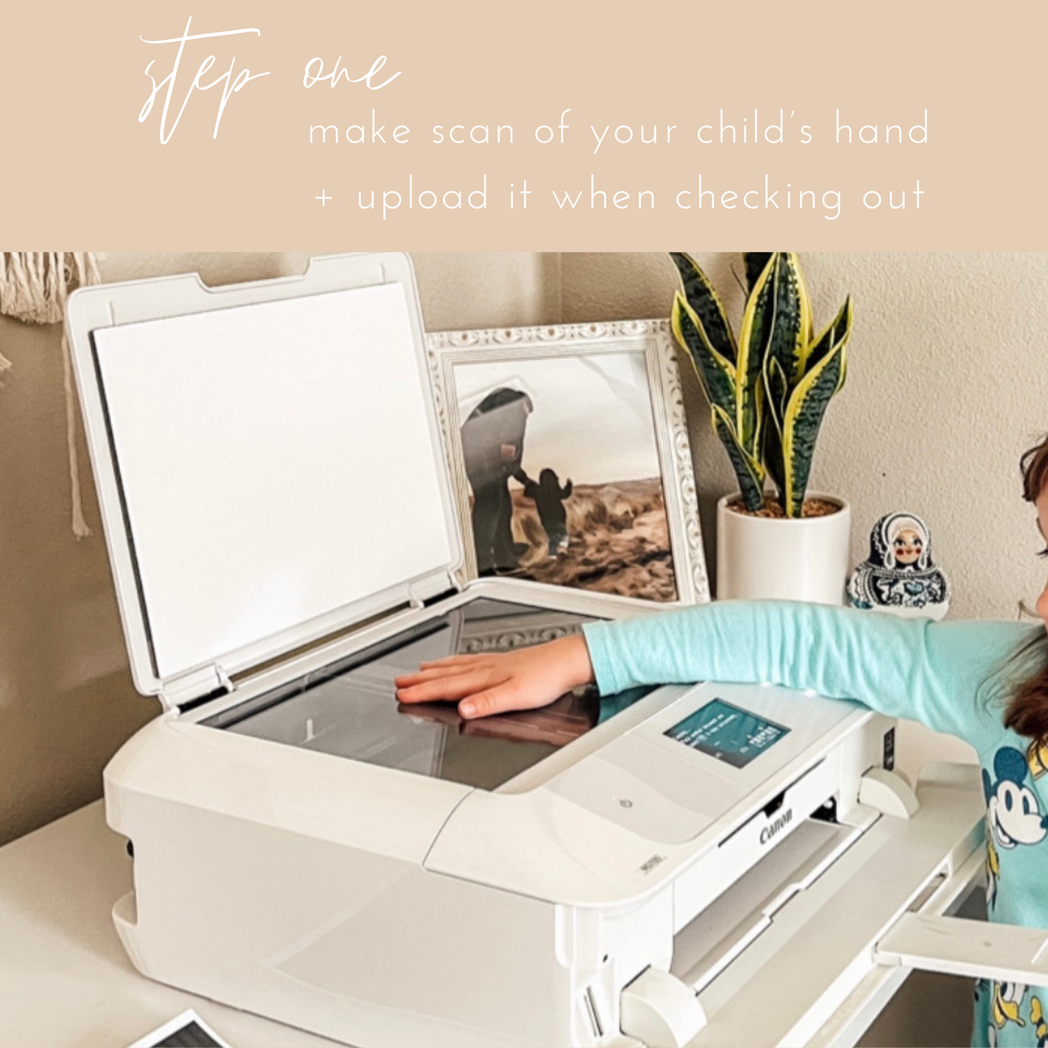 1. make a scan of their hand on a scanner and upload the file while checking out. (see my story highlight on IG “handprints” for a visual guide) OR, print their scan and take a picture of it (face down, the proper angle is important)