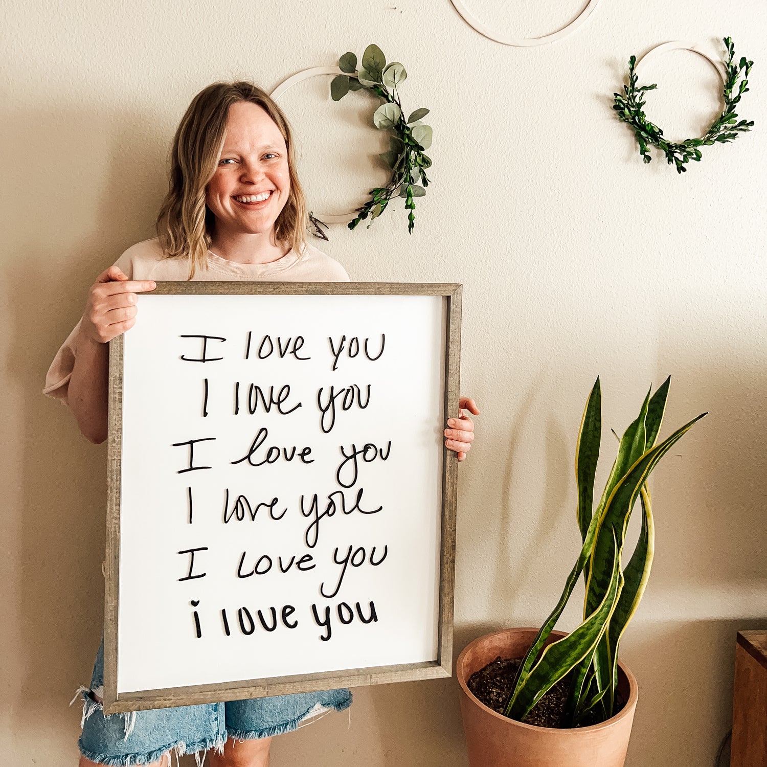 This is one of my favorite designs! It's amazing how much joy can come from seeing your loved one's "I love you". Perfect for your child's adorable handwriting, an "I love you" from your spouse's love note, or a parent or grandparents writing!